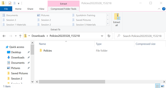 - Open the zip file and navigate to the specific folder to extract documents or click Extract all to open all folders and documents included in the download
