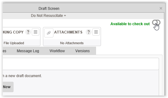 The other option is to use the toggle in the upper right corner of the Draft Screen. You can also use this toggle to check the draft back in.