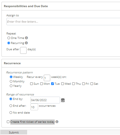 - Click Submit to open the new recurring ticket